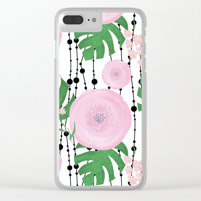 Pink Flowers On A White Background With Black Beads Clear Iphone Case By Marinaklykva