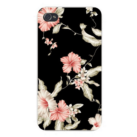 Apple Iphone Custom Case 5 5s And Se White Plastic Snap On Floral Design W Pink Flowers Vines On Black Background