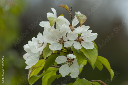Twig With Bloom And Leaves Of A Cherry Japanese Tree In